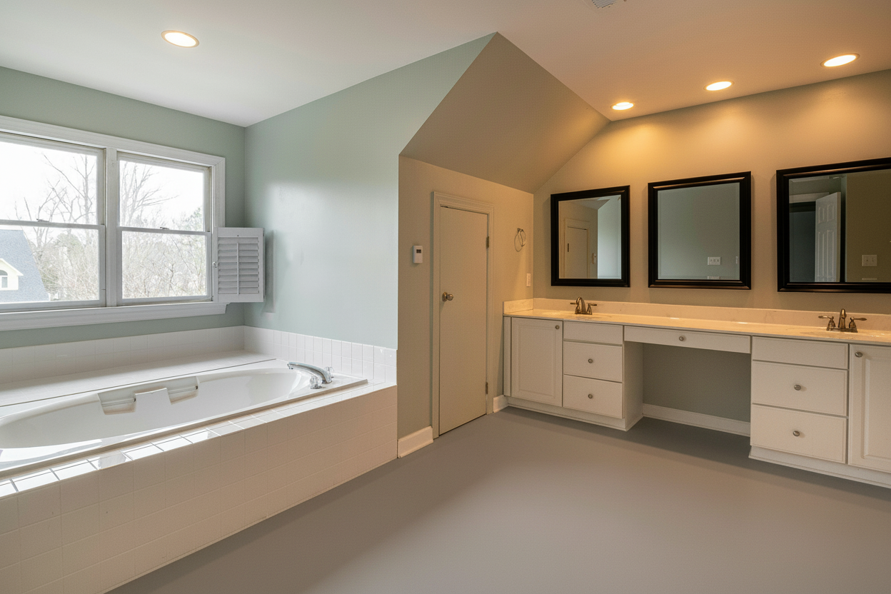 Epoxid-Bodenbeschichtung ist perfekt für das Badezimmer: wasserfest und leicht zu reinigen!